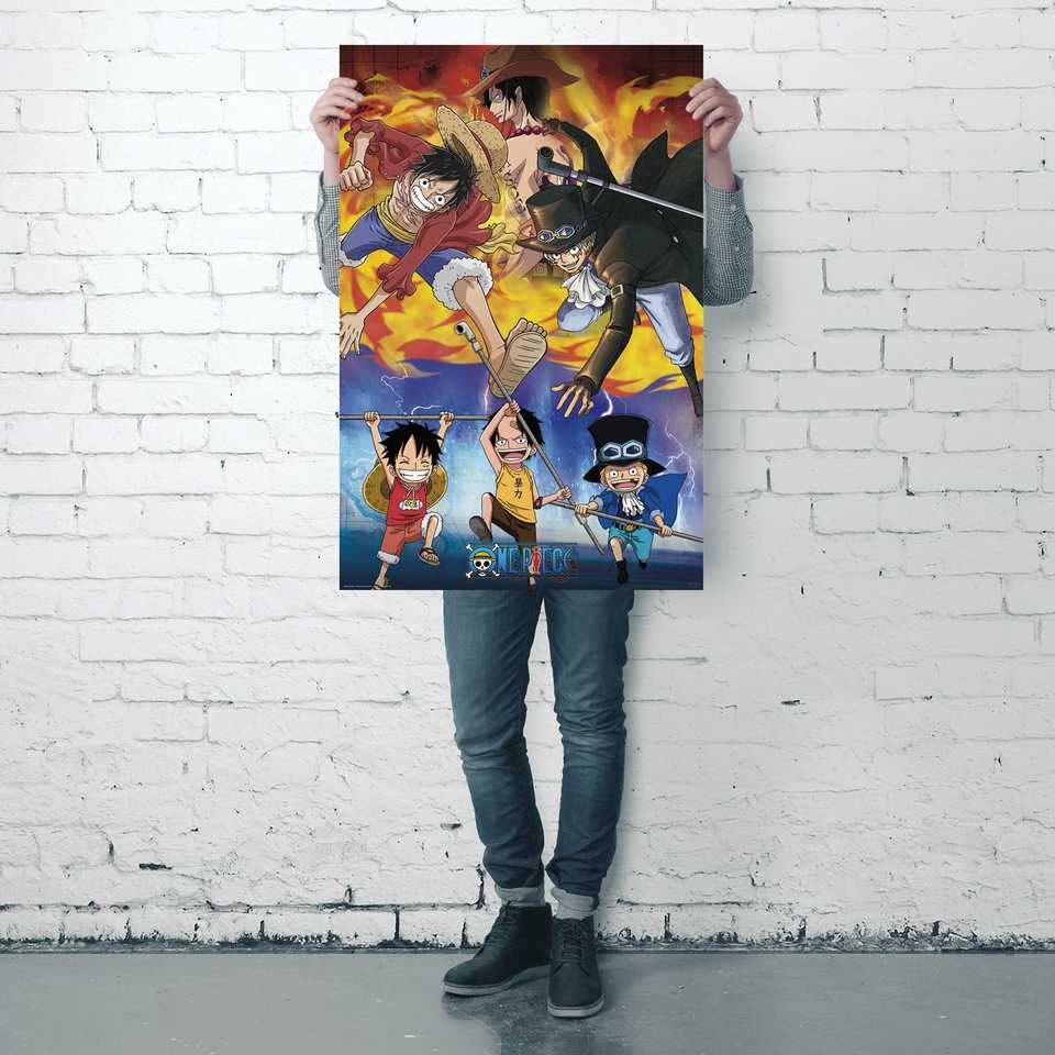 โปสเตอร์อนิเมะวันพีซ เอซ ซาโบ และลูฟี่