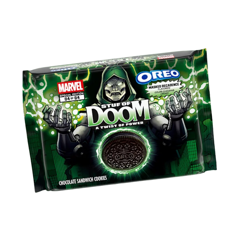 โอรีโอ มาร์เวล สตัฟ ออฟ ดูม คุกกี้แซนวิชช็อกโกแลตกรอบหวาน ไส้ครีมและไข่ บรรจุกล่อง/แพ็คเดี่ยว ขายส่ง