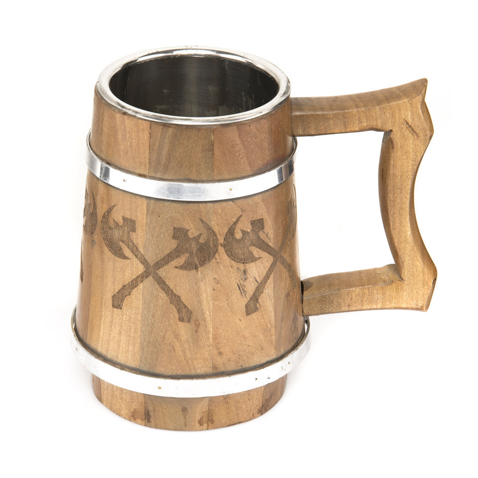 แก้วเบียร์ไม้ขอบยุคกลางพร้อมสแตนเลสด้านใน