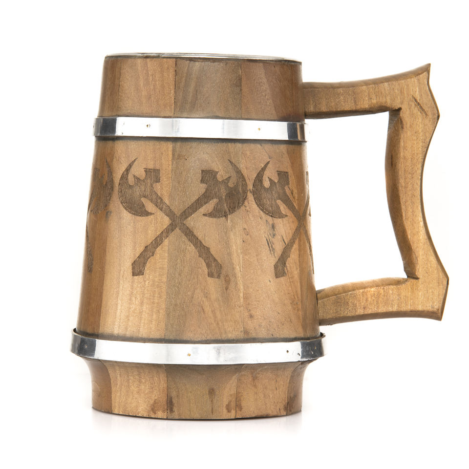 แก้วเบียร์ทำจากไม้500มล. ถ้วยเซรามิกดีไซน์รูปขวานทำจากสเตนเลสเกรดอาหาร