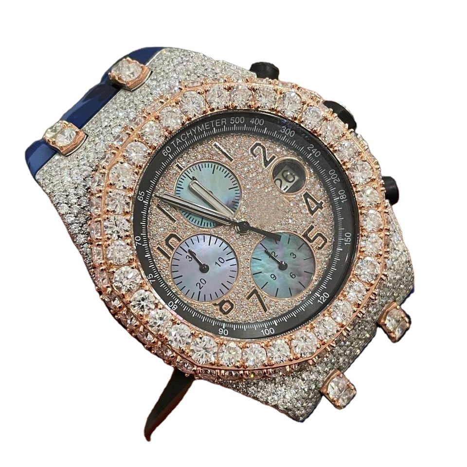 นาฬิกาอะนาล็อกกันน้ำคุณภาพสูง ตัวเรือนสแตนเลส ประดับเพชรโมอิสซาไนต์ ระดับความใส VVS สำหรับขายส่งราคาถูก
