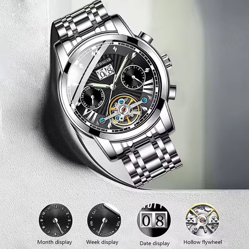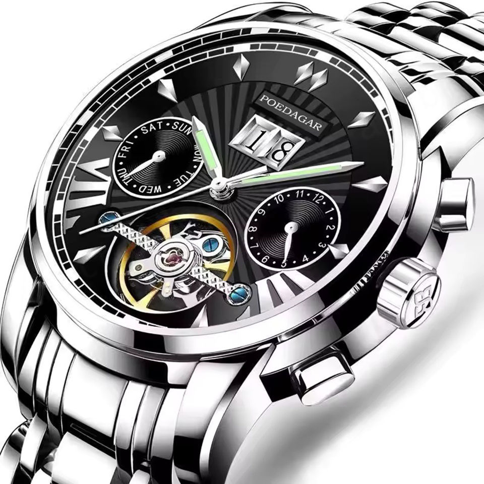 ลักษณะ:ออโต้วันที่, ปฏิทินที่สมบูรณ์, ประดาน้ำ, วัน / วัน, เรืองแสง, มือส่องสว่าง, กันน้ำ, โครโนกราฟ, กันน้ำ