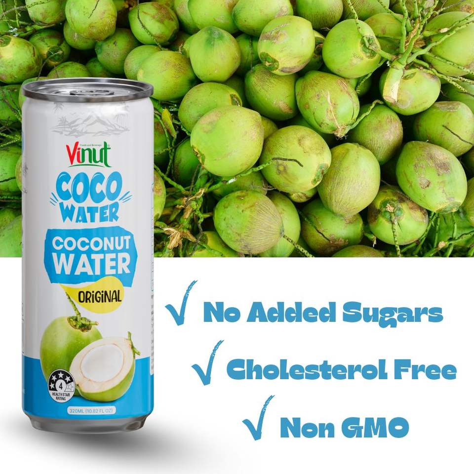 Pure Coconut Water 320ml 24 Cans Per Case Sugar-Free 100% Juice Fresh-Squeezed Sterilized Not Concentrate Nam Viet Foods