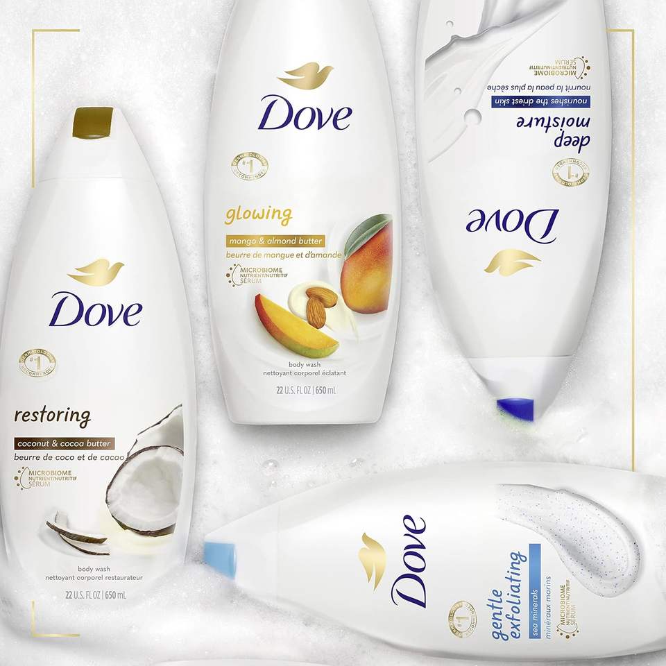 เจลอาบน้ำเพียวลี่ แพมเพอริ่ง ไวท์เทนนิ่ง สำหรับผิวแห้ง ผสมมะพร้าวและโกโก้บัตเตอร์ ขนาดพกพา 22 ออนซ์ แพ็ค 4 ชิ้น