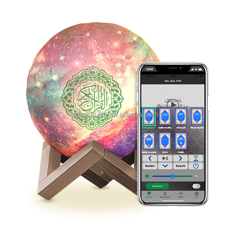 ลำโพงอัลกุรอาน QB512 ของขวัญสำหรับชาวมุสลิม ควบคุมผ่านแอพ โคมไฟรูปพระจันทร์แบบสัมผัส พกพาสะดวก วัสดุพลาสติก แบตเตอรี่ 1200mAh