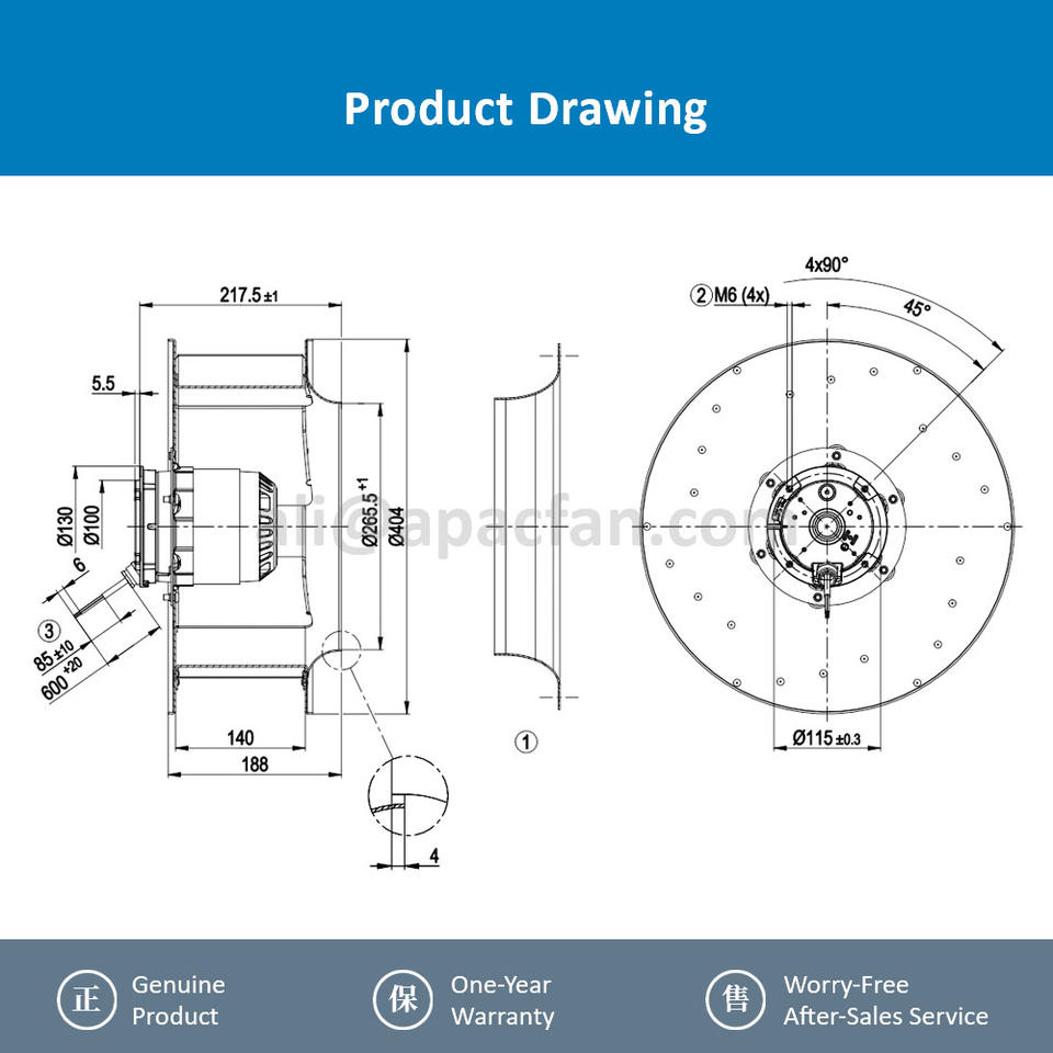 พัดลมระบายความร้อนแบบแรงเหวี่ยงสำหรับ R4E400-AN09-06 48V/230VAC 480/695W 1370/1500RPM 3900/4420m 3 /h