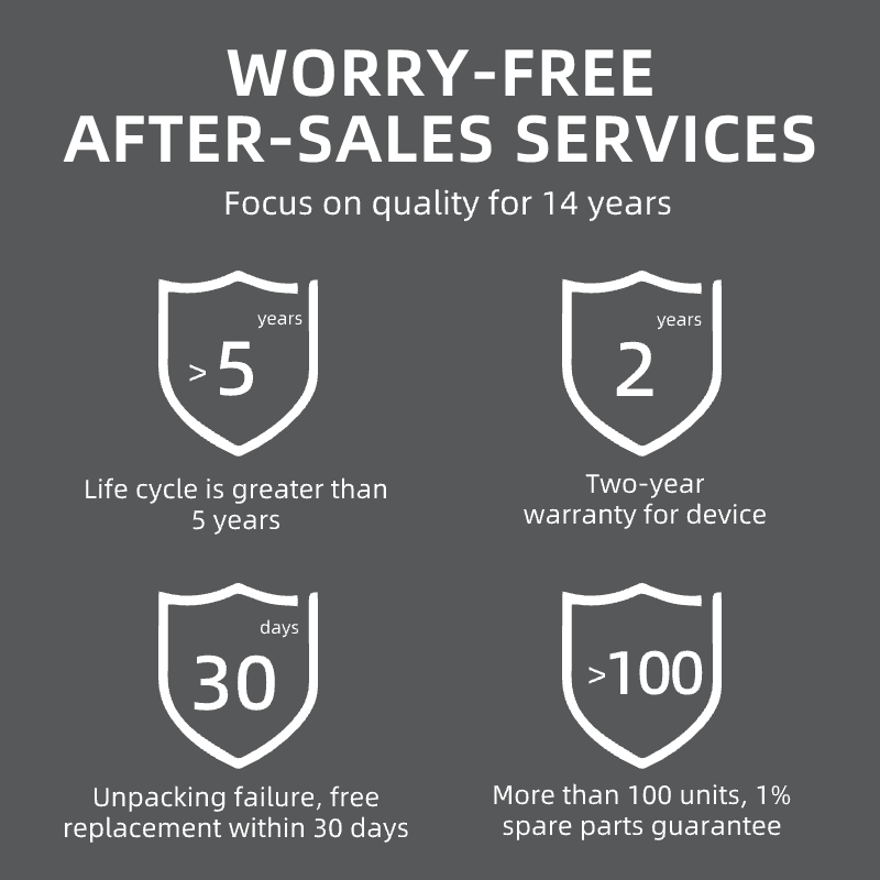 บริการหลังการขาย:Call Center และ on-line การวิเคราะห์สนับสนุน, โรงแรมการฝึกอบรมและตรวจสอบ, สุทธิและเปลี่ยน, ซ่อม