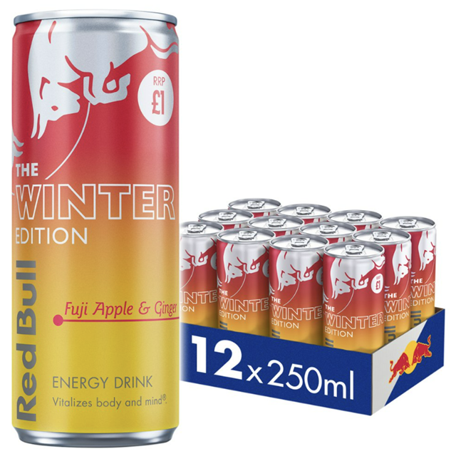 เรดบูล วินเทอร์อิดิชั่น รสแอปเปิ้ลฟูจิและขิง เครื่องดื่มชูกำลัง แพ็ค 12 กระป๋อง x 250 มล. ขายส่ง / วินเทอร์อิดิชั่น สูตรน้ำตาลน้อย 12 ออนซ์