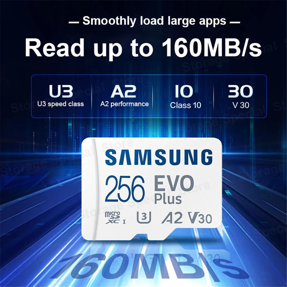 สำหรับ Samsung EVO PLUS สำหรับการ์ดไมโครเอสดีสำหรับสมาร์ทโฟน64GB 128GB 256GB 512GB A2 U3 160ความเร็วในการอ่านเมกะไบต์/วินาทีวัสดุพลาสติก Class10