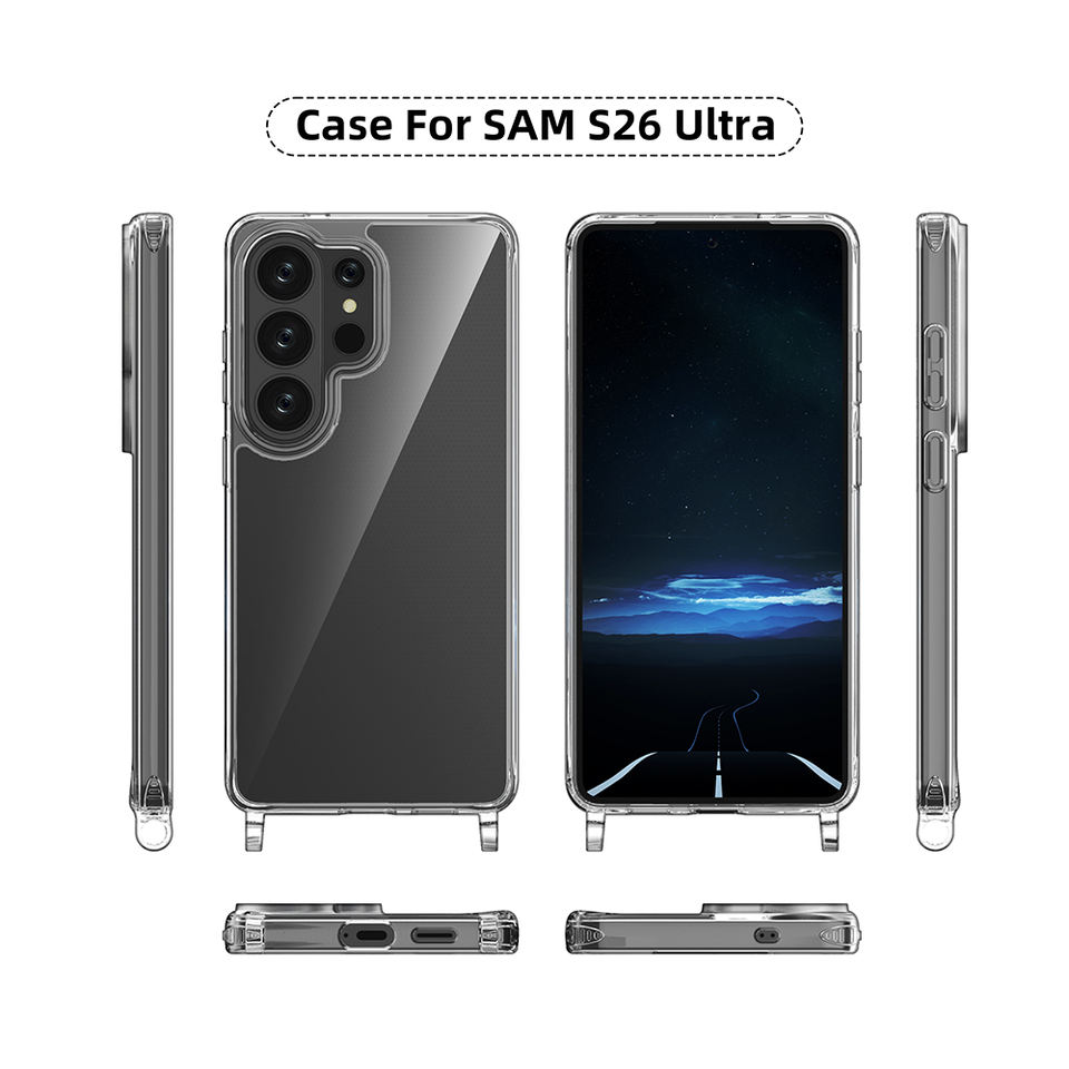 เคสโทรศัพท์กันกระแทกใสพิเศษสำหรับ Samsung S26มีสายคล้องไหล่หนังฝาครอบมือถือ PC + TPU ใหม่สำหรับ Galaxy S26อัลตร้า