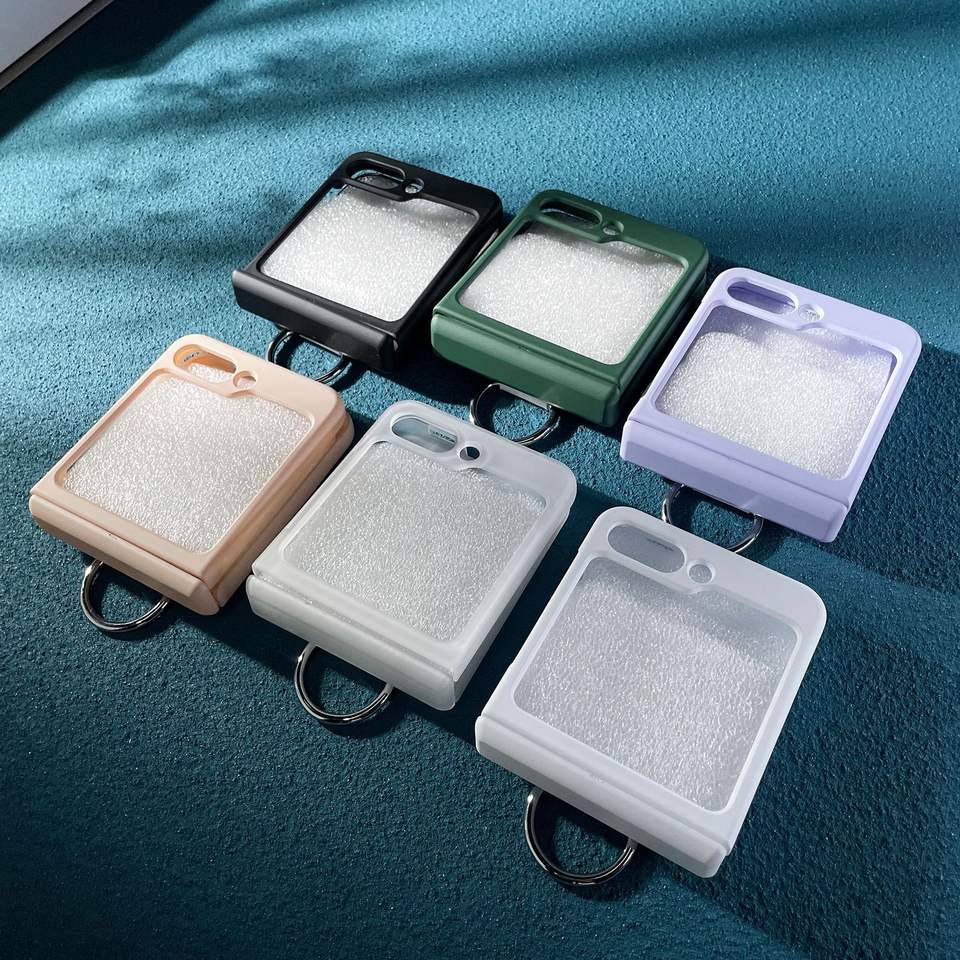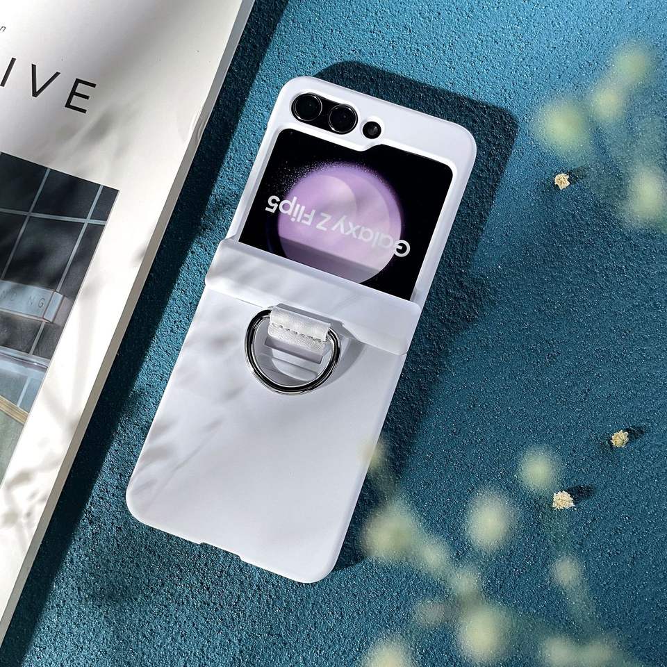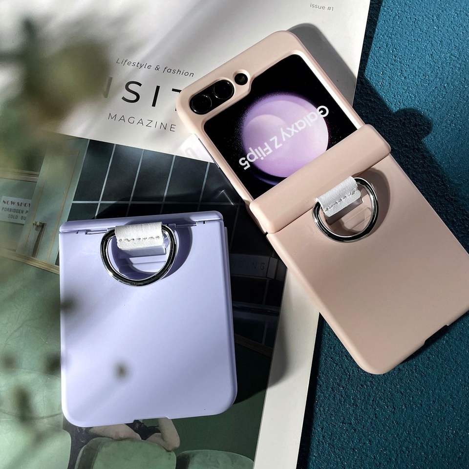 สำหรับ Samsung Z เคสโทรศัพท์แบบมีห่วงใส่ป้องกันการขีดข่วนพับได้สำหรับ Galaxy ZFlip3 4สัมผัสผิวฝาหลังเคสตั้งแหวนพับ