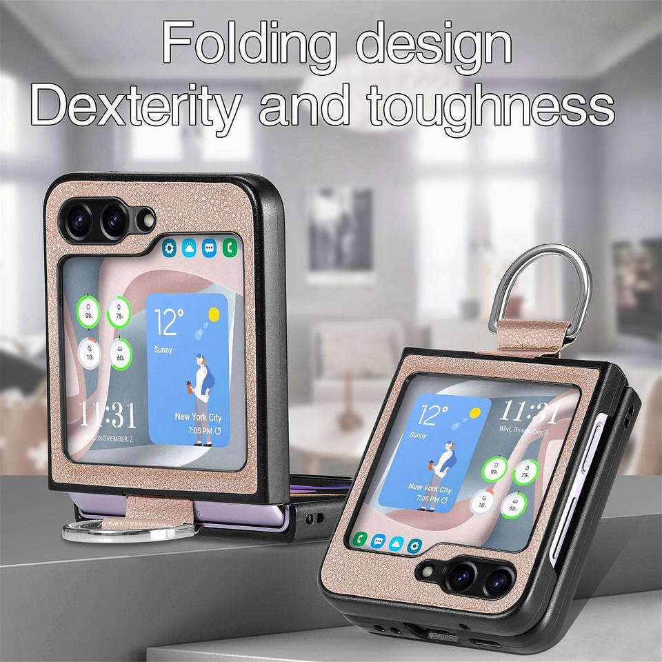 สำหรับ Samsung Z flip 7เคสหนัง PU พับได้แบบห่วงนิ้วเคสโทรศัพท์มือถือสำหรับ Samsung Galaxy Z Z flip 7 6 5