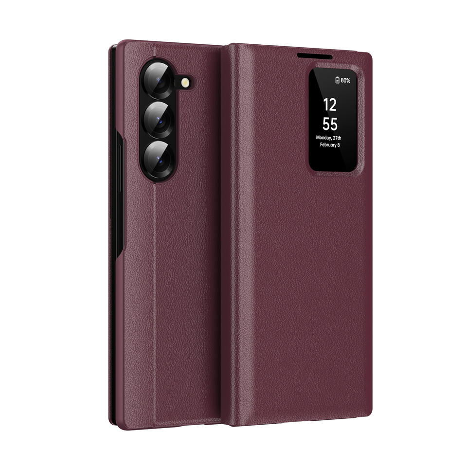สำหรับ Samsung Z พับได้6ช่องใส่บัตรกระเป๋าสตางค์เคสโทรศัพท์หนังหน้าต่างอัจฉริยะเคสกระเป๋าสตางค์สำหรับ Galaxy Z Z Fold 5 6 7
