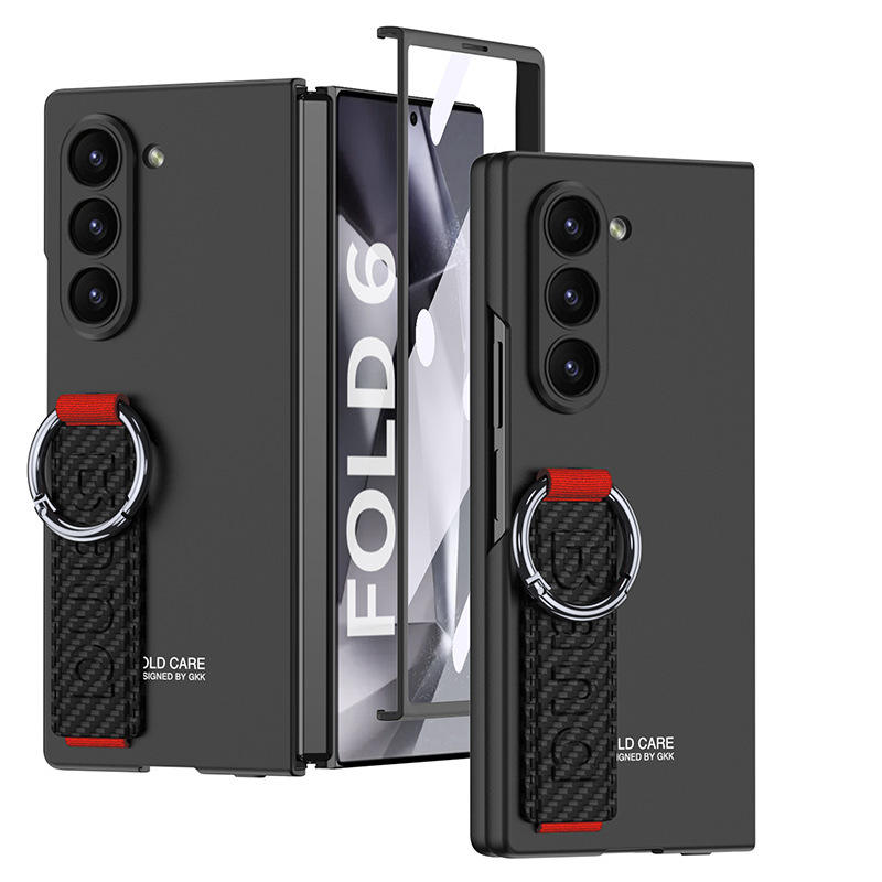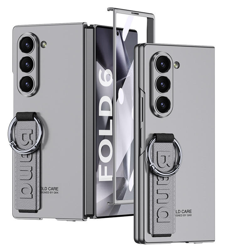 สำหรับ Samsung Z พับ7พับแหวนสายรัดข้อมือเคสโทรศัพท์สำหรับ Z พับ6หรูหราผิวสัมผัสโทรศัพท์ฝาครอบป้องกันด้วยฟิล์มนิรภัย