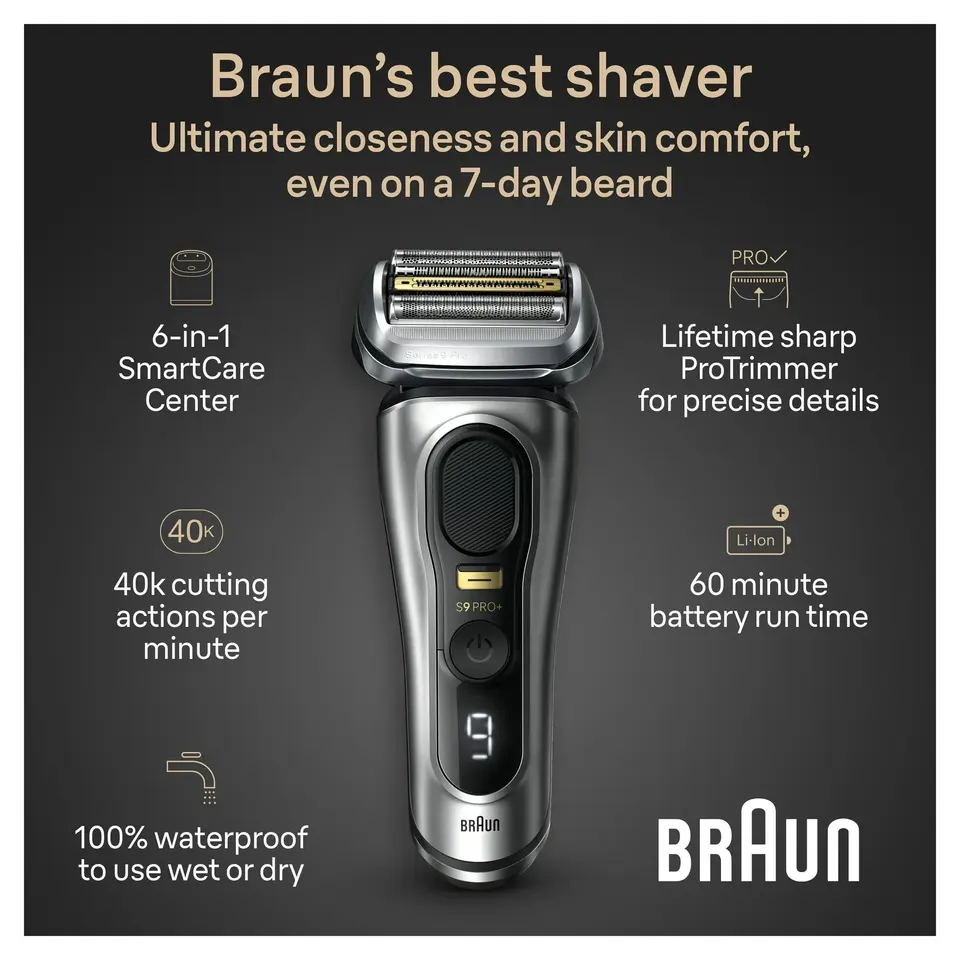 เครื่องโกนหนวดไฟฟ้าแบบฟอยล์เยอรมันพร้อมด้วยใบมีดคู่ชาร์จ USB 6in1 smartcare และกระเป๋าเดินทาง9567cc สีเงิน