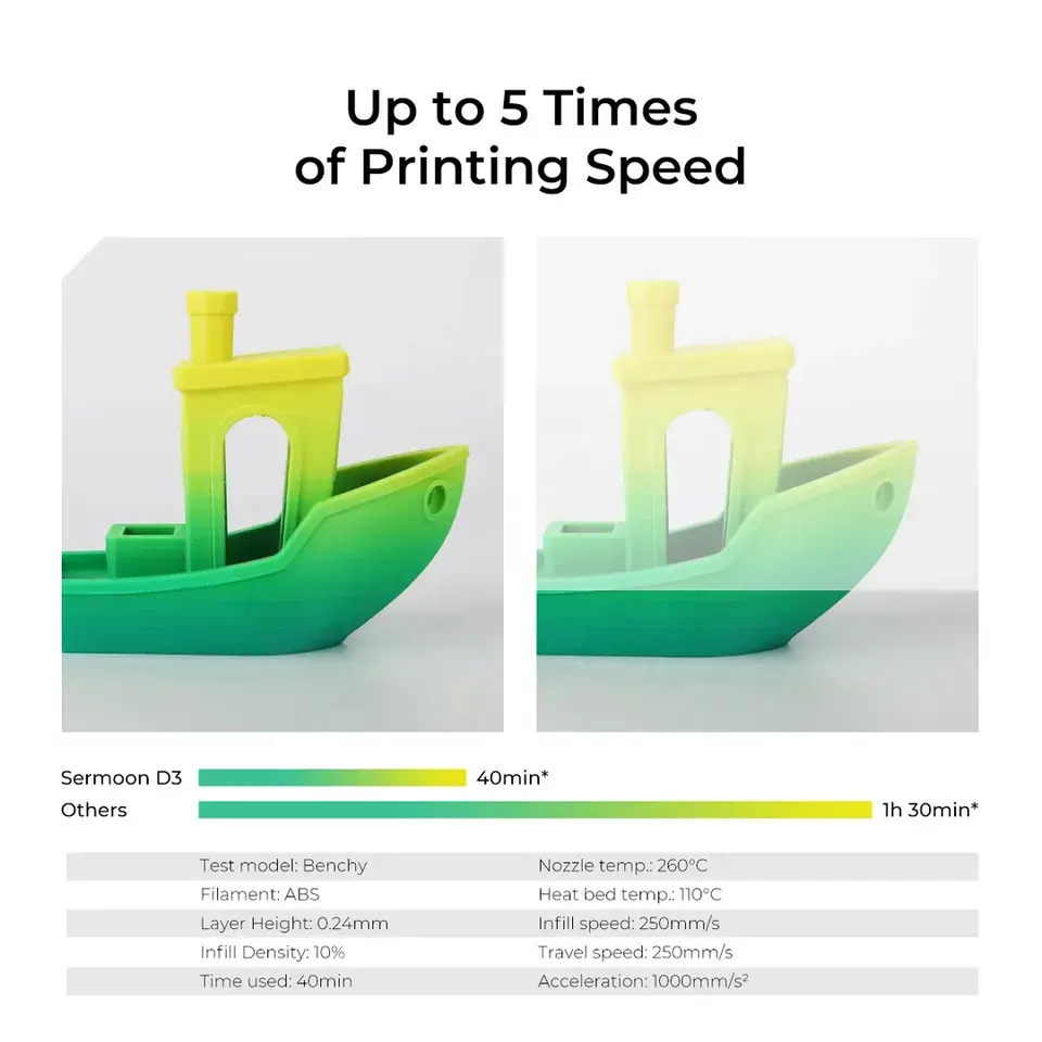 เครื่องพิมพ์ 3 มิติ Sermoon D3 ขนาดใหญ่ 300*250*300 มม. ความเร็วสูง ทนความร้อนสูง สำหรับงานอุตสาหกรรม ระบบ Core-XY อัตโนมัติ ใช้กับวัสดุ PLA