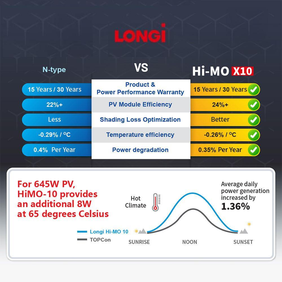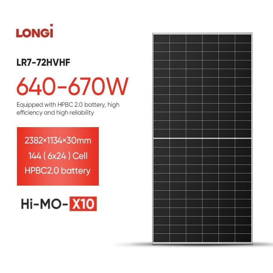 แผงโซลาร์เซลล์อุตสาหกรรมพลังงานสูง Solar Himo X10 Hpbc 2.0 เทคโนโลยี 670W-645W ป้องกันฝุ่น สีดำทั้งหมด ประสิทธิภาพ 24.8%