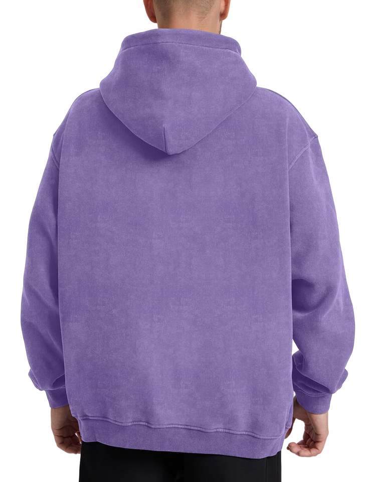 เสื้อฮู้ดแบบสวมหัวสำหรับผู้ชายผ้าโพลีเอสเตอร์/ ผ้าฝ้ายสีพื้นซักด้วยกรดสำหรับฤดูหนาว