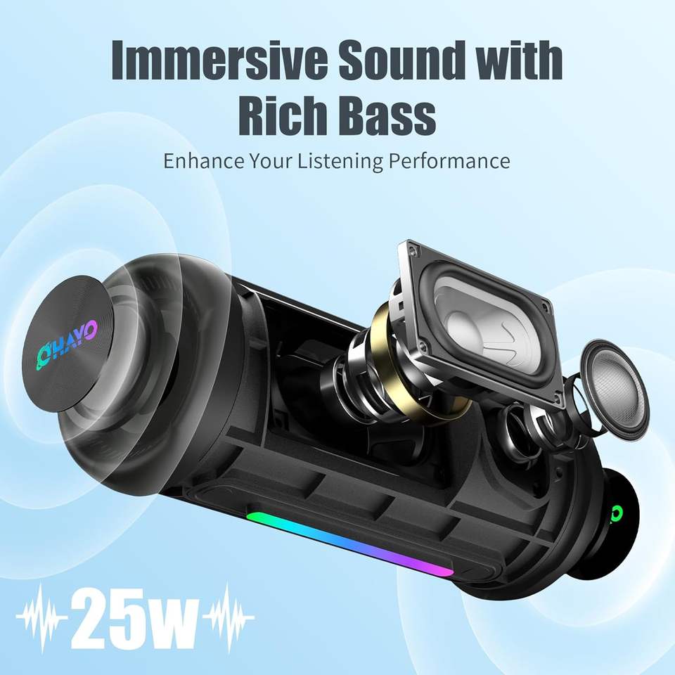 ลำโพงไร้สาย 25W ซูเปอร์เบส IPX7 กันน้ำ พกพาสะดวก เสียงสเตอริโอสำหรับใช้งานกลางแจ้ง ไฟ LED สีสันสดใส เหมาะสำหรับงานปาร์ตี้ ใช้ในบ้าน ใช้แบตเตอรี่