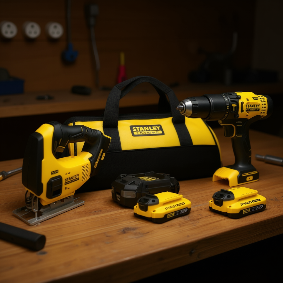 ชุดเครื่องมือไฟฟ้า Stanley 18V V20 พร้อมสว่านไขควง เลื่อยจิ๊กซอว์ แบตเตอรี่ 2 ก้อน 2Ah ที่ชาร์จ และกระเป๋า