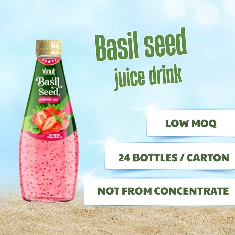 น้ำซุปข้นเมล็ดโหระพาสตรอว์เบอร์รี บรรจุขวดแก้ว 9.8 ออนซ์ (290 มล.) รับผลิตแบบ OEM/ODM แบรนด์ส่วนตัว ขายส่ง