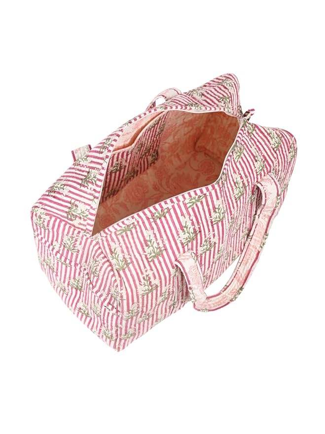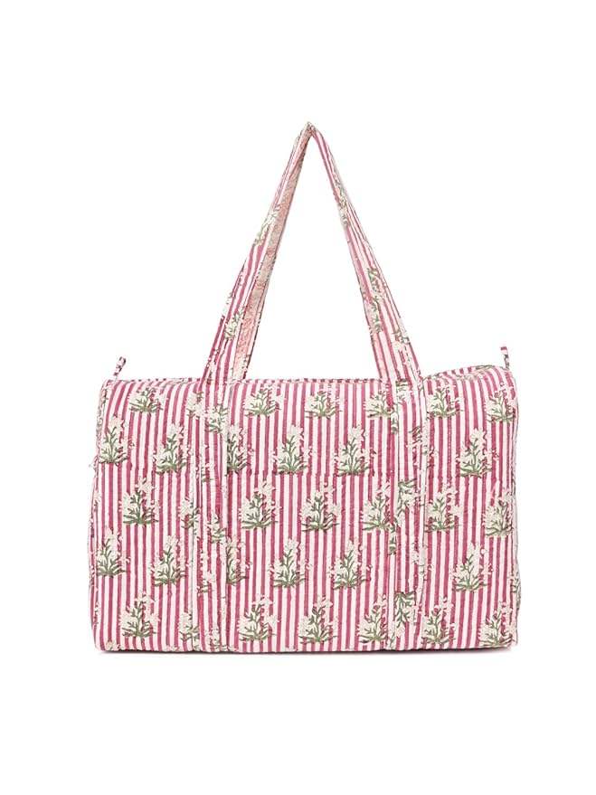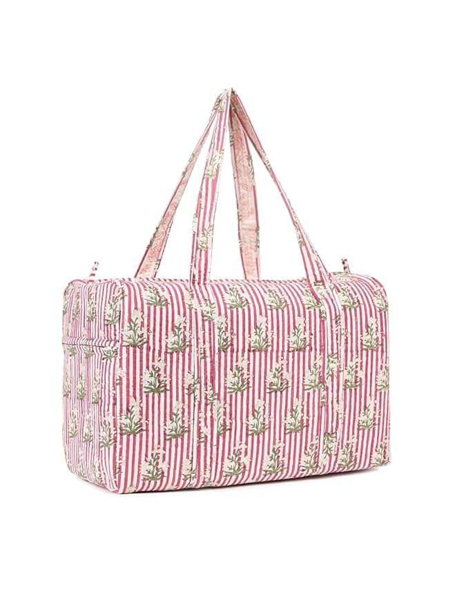 กระเป๋าดัฟเฟิลบัทแบบลำลองลายขวางผ้าคอตตอนแบบซิปแข็งแรงทนทานเหมาะสำหรับใส่ไปสุดสัปดาห์เป็นมิตรกับสิ่งแวดล้อม