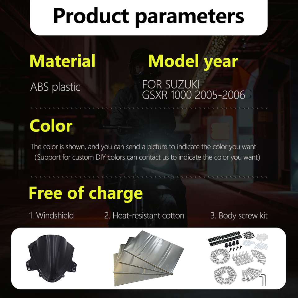 สำหรับชุดแฟริ่งตัวถังรถมอเตอร์ไซค์ SUZUKI GSXR 1000 ปี 2005-2006 วัสดุ ABS
