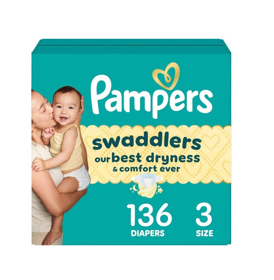 ผ้าอ้อมสำเร็จรูป Swaddlers Cotton Jacquard ไซส์ 3 (13-26 ปอนด์) 136 ชิ้น แบบสองชั้น ป้องกันการรั่วซึมด้านข้าง รูปทรง Aliform ช่วยให้ลูกน้อยแห้งสบาย