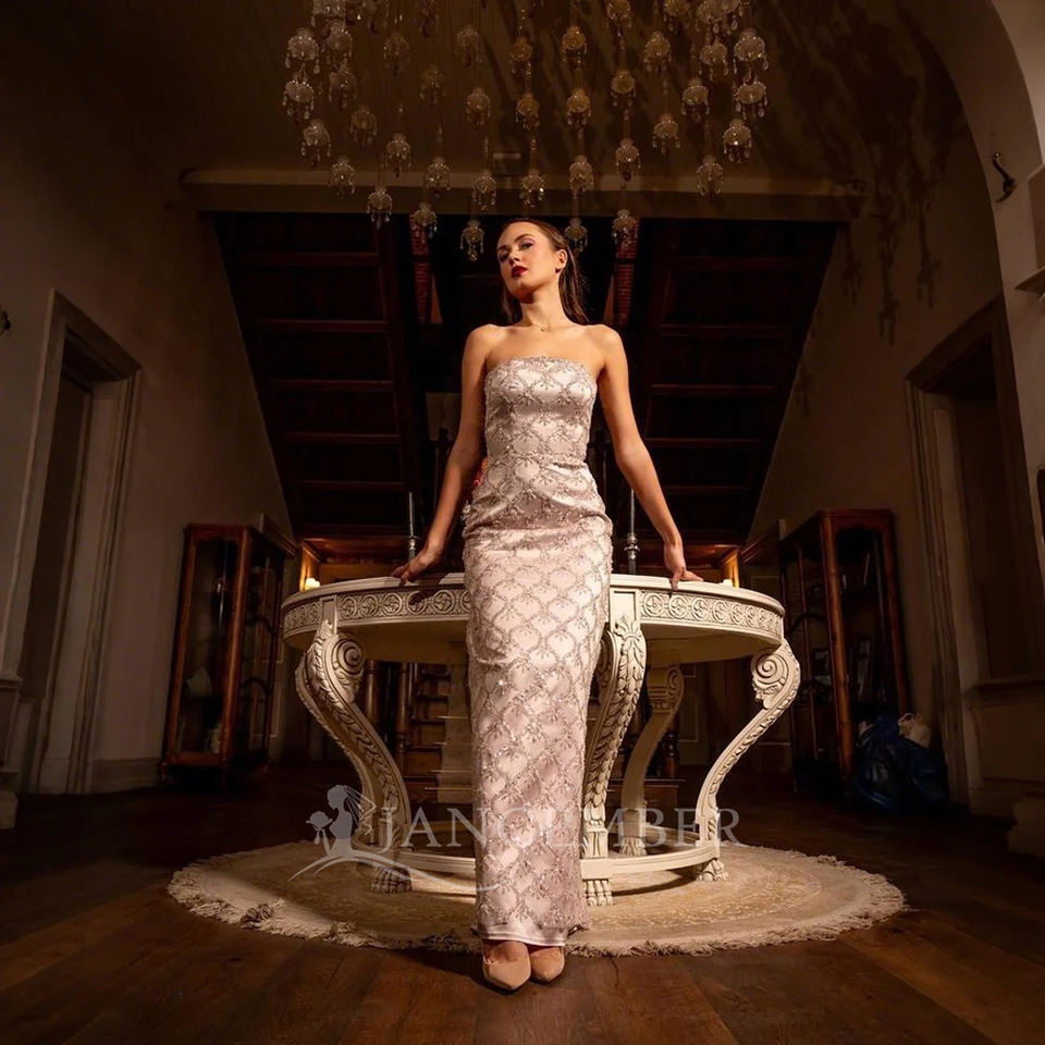 ชุดแต่งงานแบบไร้สาย รุ่น TK93-42 ตกแต่งด้วยลูกไม้คริสตัลทันสมัย ทรงตรง เซ็กซี่ กระโปรงยาวแบบมีชายลากพื้น