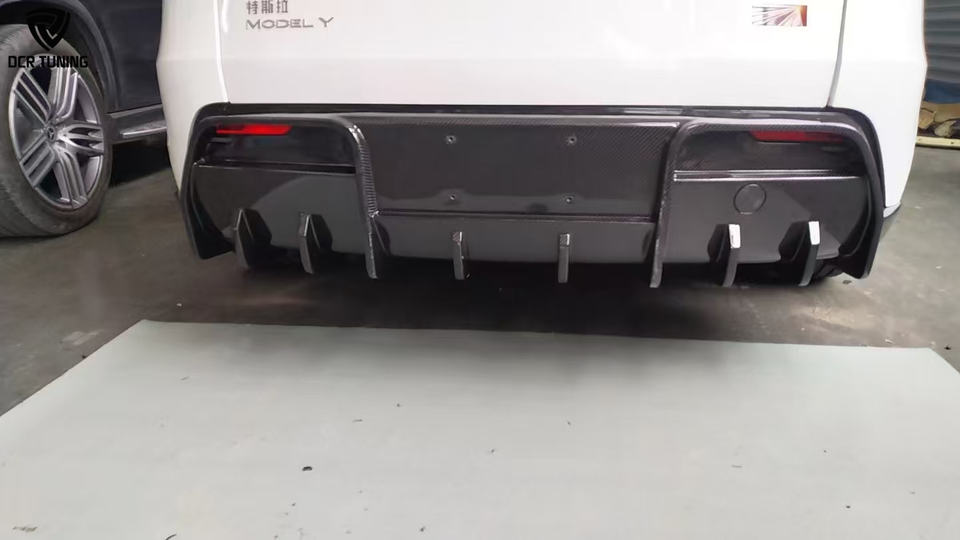 ชุดแต่งตัวถังรถยนต์ Tesla 2025+ รุ่น Y Juniper ทำจากคาร์บอนไฟเบอร์แห้ง ประกอบด้วยลิ้นกันชนหน้า ดิฟฟิวเซอร์หลัง สเกิร์ตข้าง ผิวเงา/ด้าน
