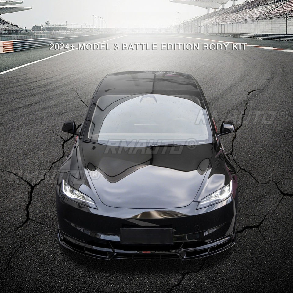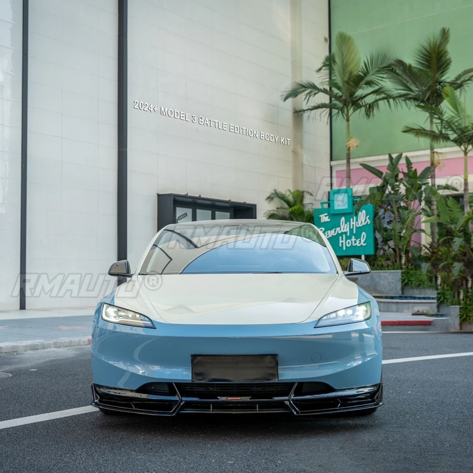 สำหรับรถยนต์เทสล่า รุ่น 3 ปี 2024+ ชุดแต่งกันชนหน้า สปลิตเตอร์ดิฟฟิวเซอร์ ชุดแต่งตัวถังรถยนต์ ฝาครอบป้องกันกันชน อุปกรณ์ตกแต่งรถยนต์