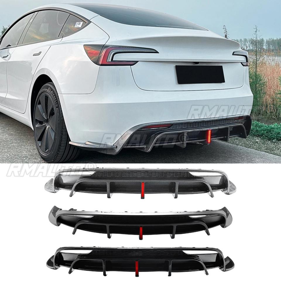 ชุดแต่งกันชนหลังสำหรับรถยนต์เทสล่า รุ่น 3 ปี 2024+ พร้อมลิ้นกันชนและแผ่นป้องกัน