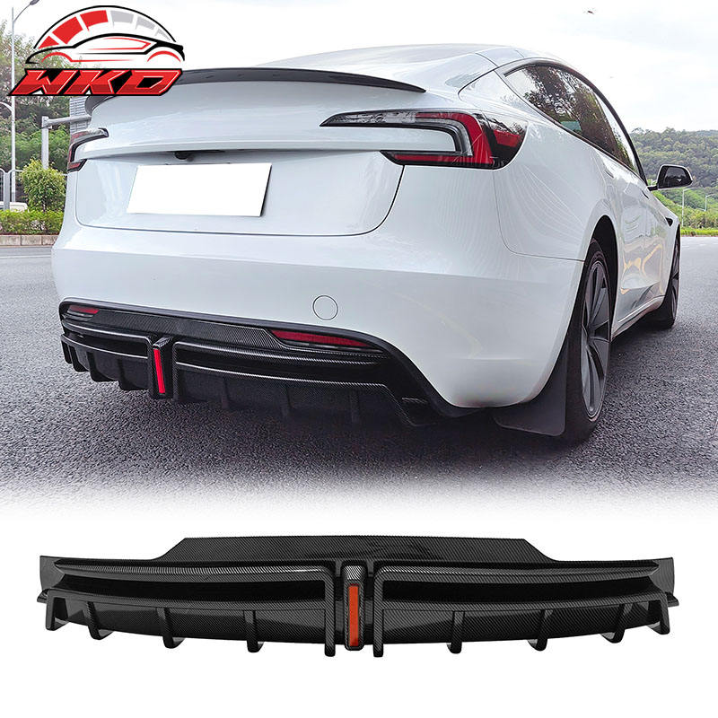 สำหรับเทสล่า โมเดล 3 ไฮแลนด์ ปี 2024-2025 ดิฟฟิวเซอร์กันชนหลัง ลายคาร์บอนไฟเบอร์ พร้อมไฟ LED คุณภาพสูง ชุดแต่งตัวถัง