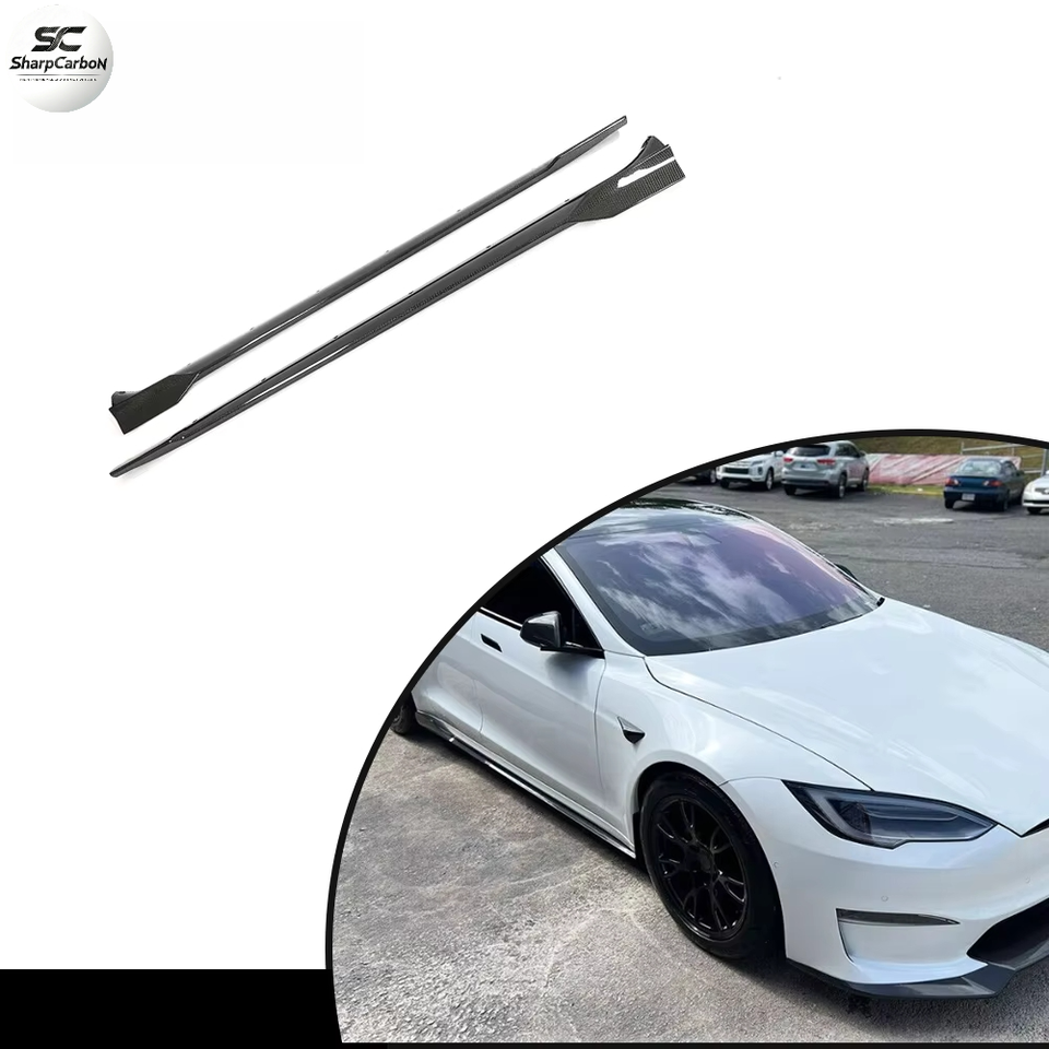 สเกิร์ตข้างคาร์บอนแท้สำหรับรถยนต์เทสล่า โมเดล เอส พลายด์ ปี 2021-2023 พร้อมลิ้นเสริม