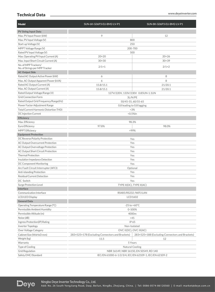 อินเวอร์เตอร์โซลาร์เซลล์แบบเชื่อมต่อระบบไฟฟ้าสามเฟส รุ่น SUN-8K-G06 แรงดันต่ำ พร้อมระบบกักเก็บพลังงานสำหรับใช้ในบ้าน