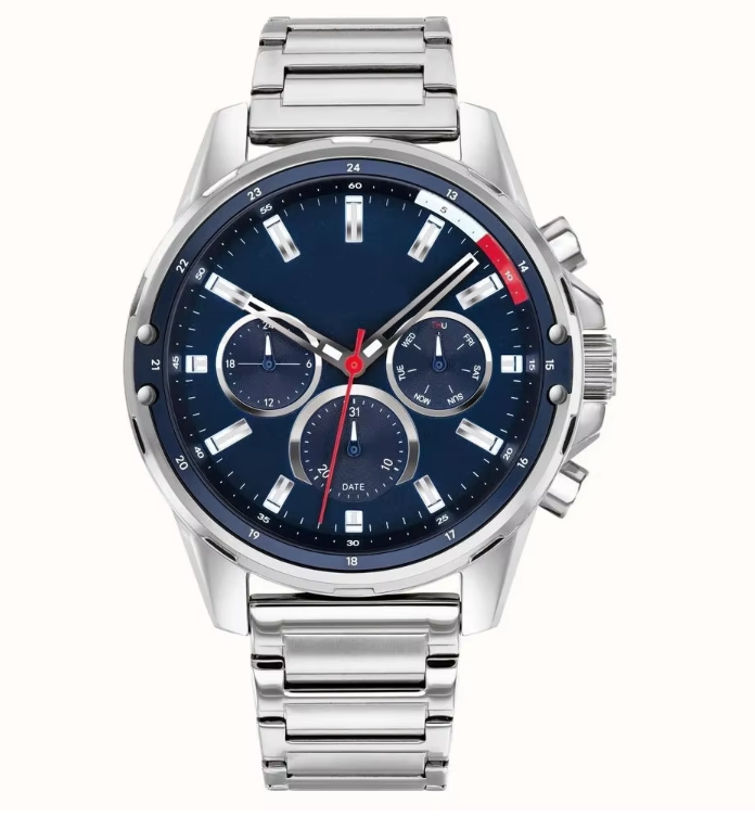นาฬิกาควอตซ์อะนาล็อก Tommy Hilfiger สำหรับผู้ชาย รุ่น T for Tommy สายสแตนเลส หน้าปัดแบบมีเสน่ห์ กระจกหน้าปัด รุ่น 1791788/1791791/1791936