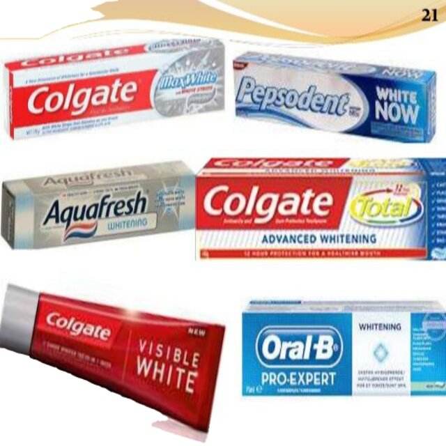 ป้องกันแบคทีเรีย, ป้องกันโพรง-, ทำความสะอาดขั้นพื้นฐาน, สำหรับฟันที่สำคัญ, ปากสดชื่น, ไวท์เทนนิ่ง, ลมหายใจสดชื่น, ทำความสะอาดอย่างล้ำลึก, บรรเทาความไว, ความต้านทานกรด, ปราศจากฟลูออไรด์, แบบพกพา, อ่อนไหว, การควบคุมทาร์ทาร์, การกระทำคู่, ฟันแข็งแรง, ทิ้งลักษณะ