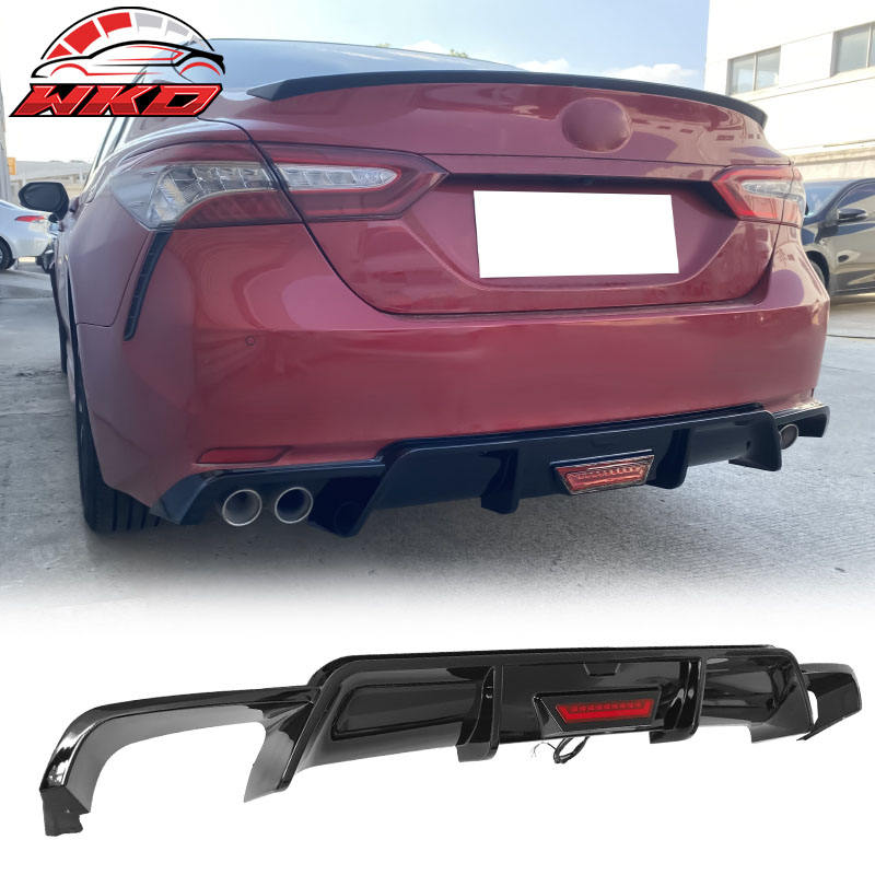 สำหรับรถยนต์โตโยต้า คัมรี่ ปี 2018-2024 รุ่น SE XSE ดิฟฟิวเซอร์หลังพร้อมไฟ LED - สีดำเงา ชุดแต่งคุณภาพสูง