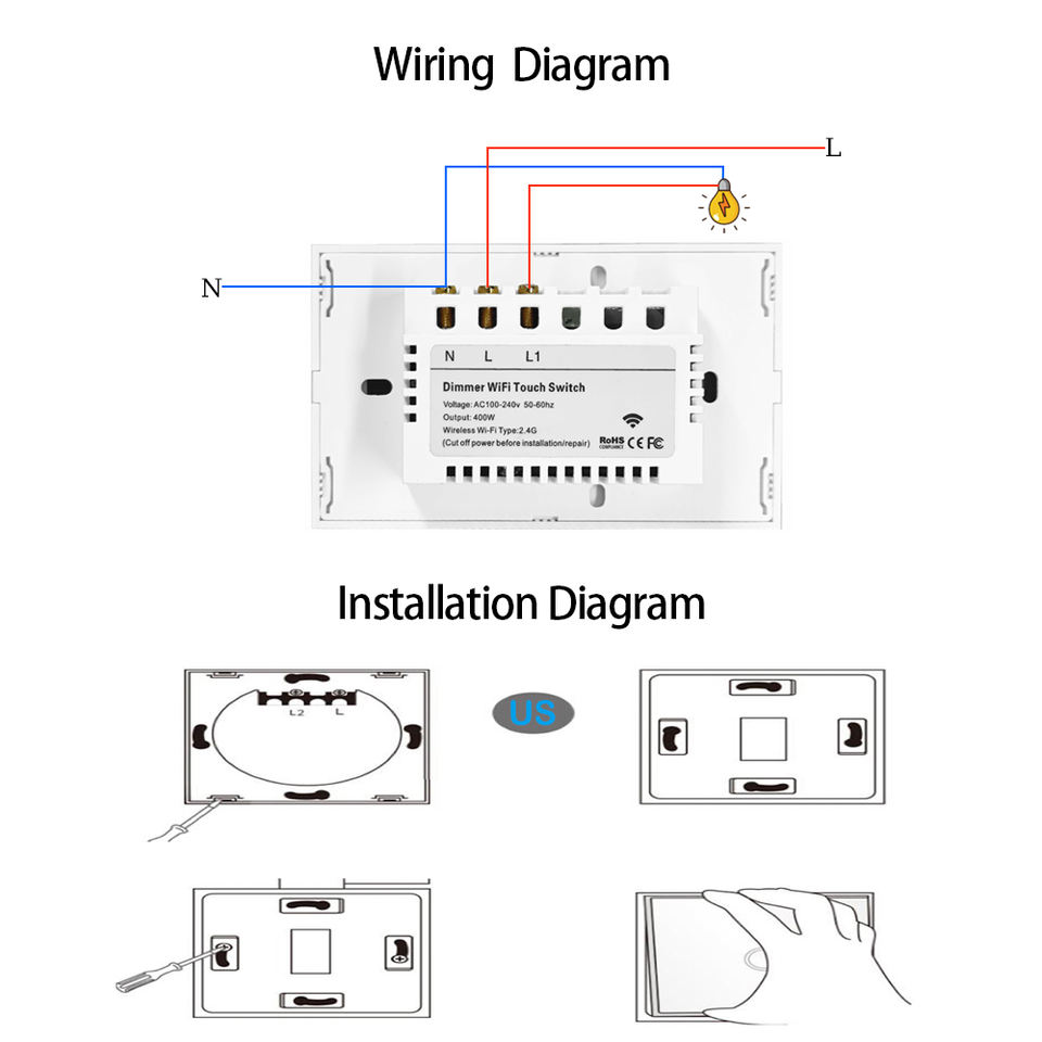 หลอดไฟหรี่แสงได้สำหรับ Tuya USA Smart LED WiFi Alexa Google Home ใช้ได้กับ110V-220V แผงสัมผัสควบคุมระยะไกลแรงดันไฟฟ้าสูงสุด2