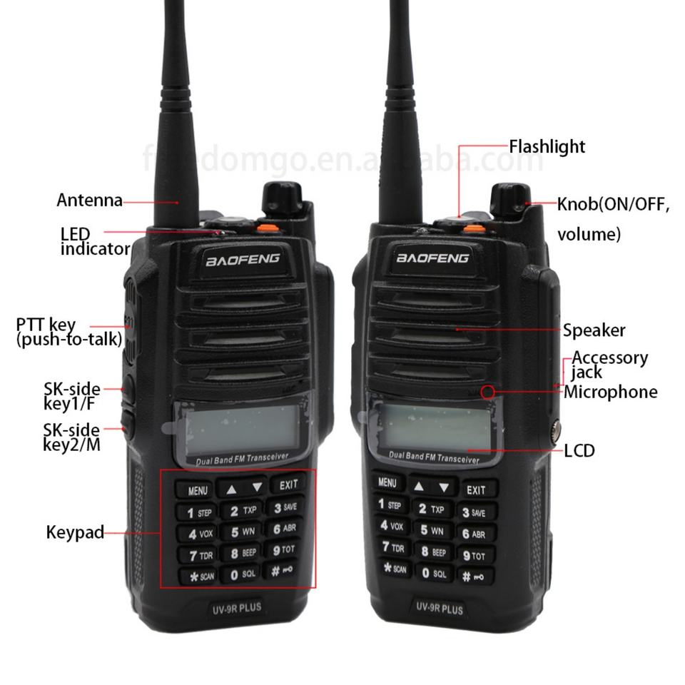 สำหรับวิทยุสื่อสารแบบพกพา UV-9R Plus 128 IPX6 กำลังส่ง 5 วัตต์ แบตเตอรี่ลิเธียม 1000-1500mAh ใช้คลื่นความถี่ VHF/UHF สำหรับใช้งานกลางแจ้ง สีดำ