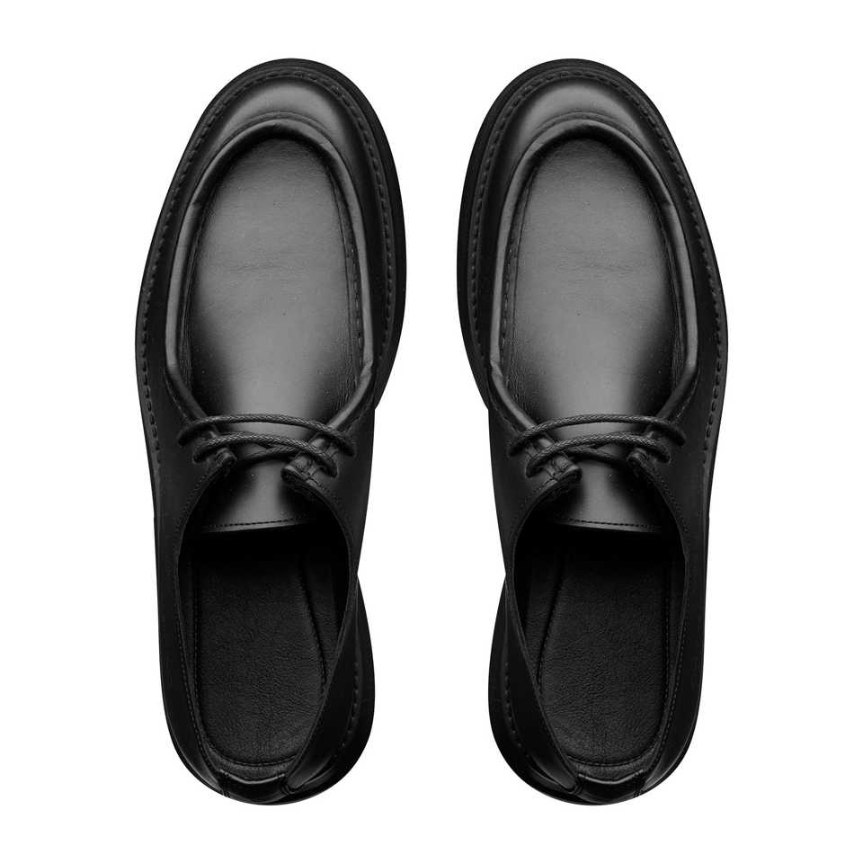 Polacchino รองเท้าหนังลูกวัวส้นเตี้ยสีดำแบบอิตาลีทำจากยางทนทานพื้นรองเท้าโลโก้โทนออนโทนสีสำหรับผู้ชาย