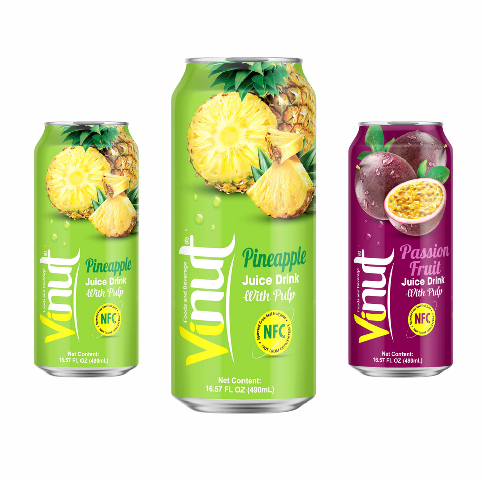 เครื่องดื่มน้ำผักผลไม้ปราศจากน้ำตาล490มล. สำหรับโรงงาน vinut ในเวียดนามเครื่องดื่มหลากหลายรสชาติพร้อมเยื่อกระดาษฉลากส่วนตัว