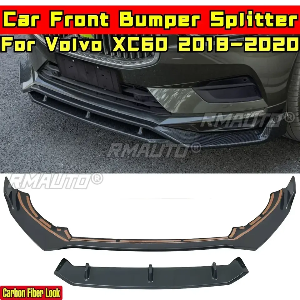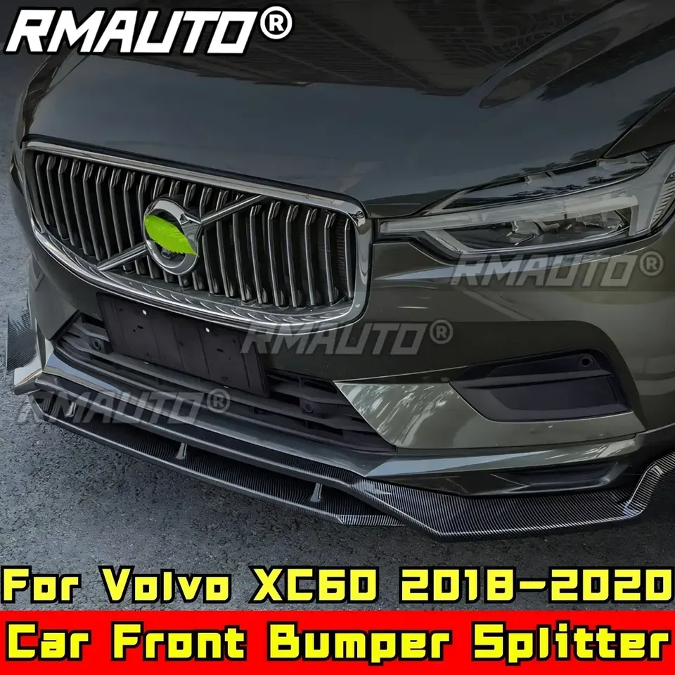 ชุดแต่งกันชนหน้า Volvo XC60 ปี 2018-2020 สีดำเงา สไตล์สปอร์ต พร้อมฝาครอบสปลิตเตอร์กันชนหน้า อุปกรณ์ตกแต่งรถยนต์