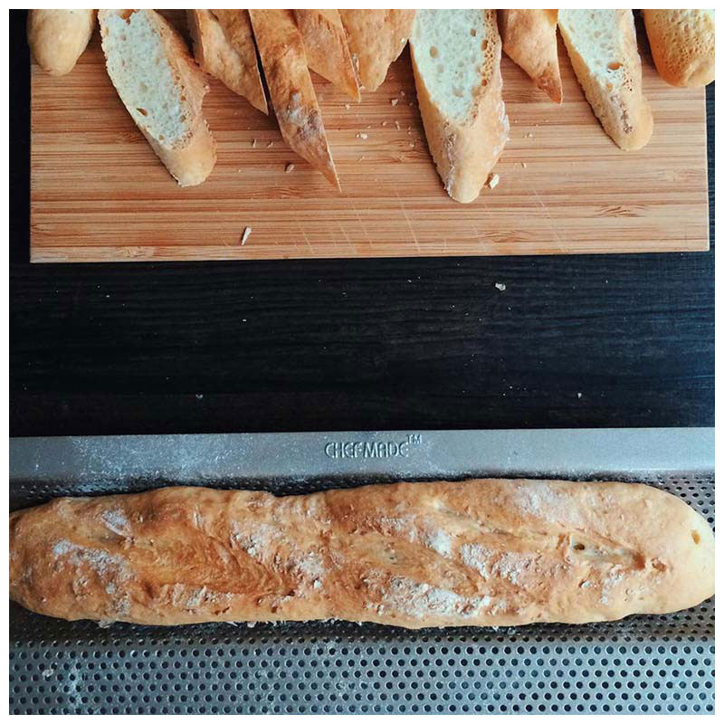 ถาดอบเค้กบาแกตต์แบบมีรู WK9026 ขนาด 15 นิ้ว เคลือบสารกันติด เป็นมิตรต่อสิ่งแวดล้อม สำหรับทำขนมทองคำ