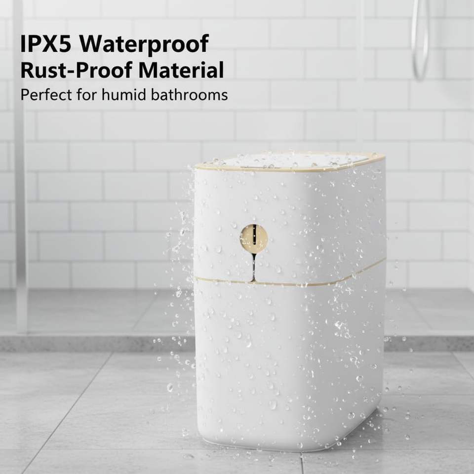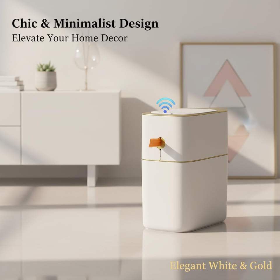 ถังขยะอัจฉริยะพลาสติกสีขาวแบบไร้สัมผัสพร้อมระบบกรองกลิ่น สำหรับใช้ในห้องน้ำ ห้องครัว และบ้าน