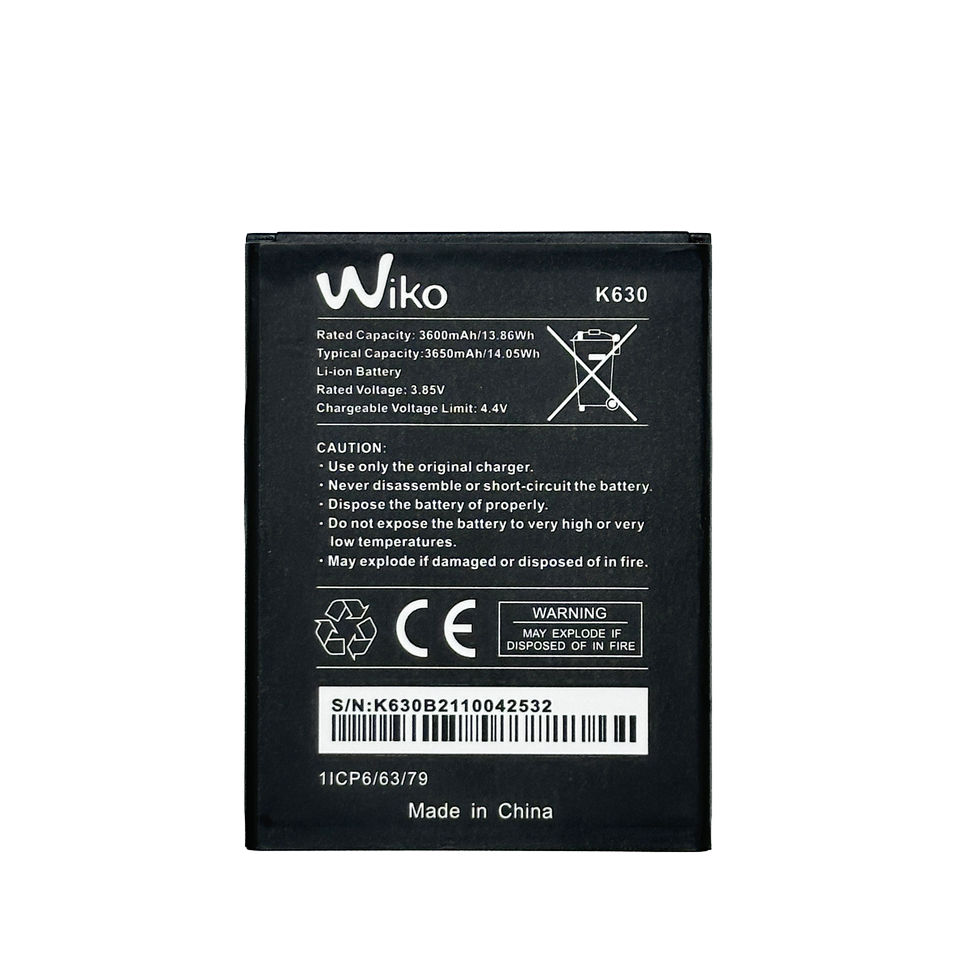 แบตเตอรี่โทรศัพท์มือถือ Wiko Electric Board K630 ความจุ 3650mAh สำหรับการค้าต่างประเทศ แบตเตอรี่สำรอง รองรับการชาร์จเร็ว K630