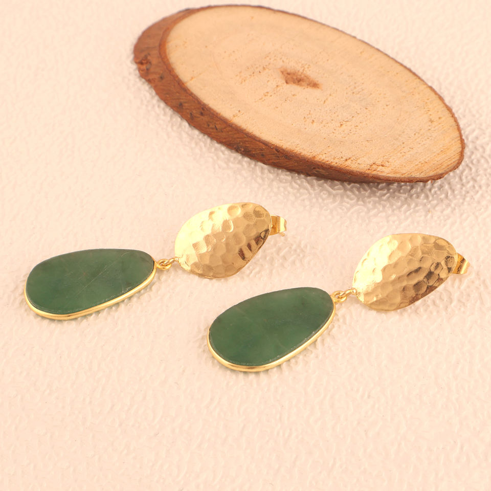 สําหรับผู้หญิงต่างหูหยดของแท้สีเขียวสตรอเบอร์รี่ควอตซ์ชิ้น bezel ต่างหู 18 พันทองชุบตอกจบหูโพสต์สตั๊ดห้อย