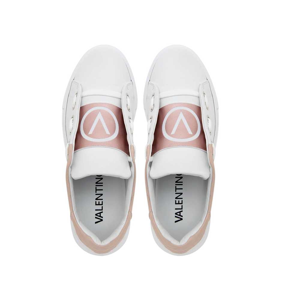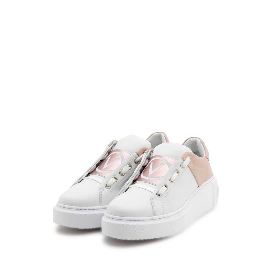รองเท้าผ้าใบลำลองสำหรับผู้หญิง รุ่น BaragaS สีขาว/นู้ด พื้นรองเท้าด้านในทำจาก PU ผลิตในอิตาลี พื้นรองเท้ายางหนา ลาย Vlogo Laminato Dettagli Laminati