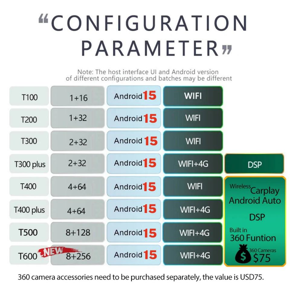 การรวมกัน:รองรับบลูทูธ, GPS ในตัว, เครื่องเล่นซีดี, เครื่องเล่น MP3 / MP4, เครื่องรับวิทยุ, หน้าจอสัมผัส, กล้องสำรอง, พอร์ตAUX, ย้อนกลับAid, รองรับ DVR/TPMS/DAB ทั้งหมด ต้องซื้ออุปกรณ์เสริม