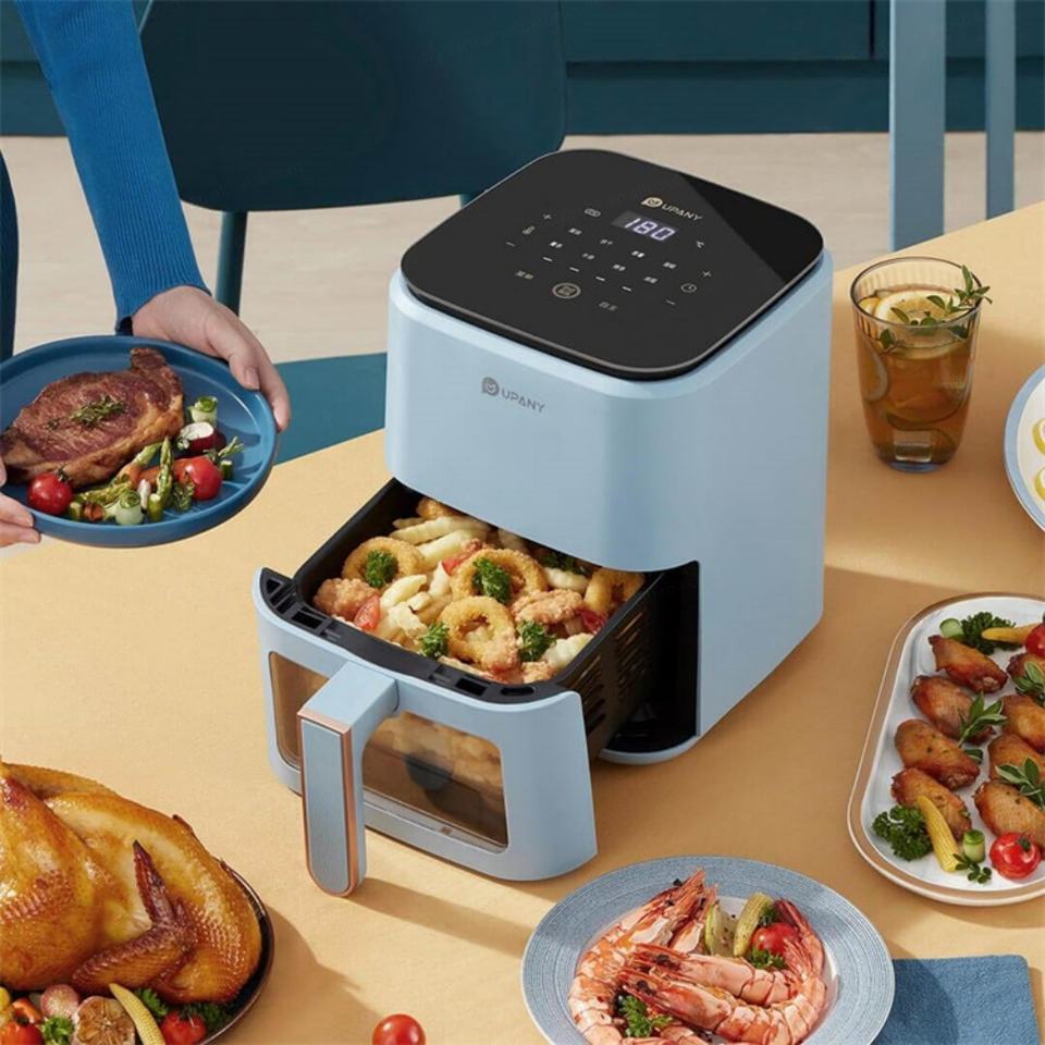 หม้อทอดไร้น้ำมันไร้ควันสำหรับ Xiaomi Youpin หม้อทอดไร้4L สีฟ้าหมอก